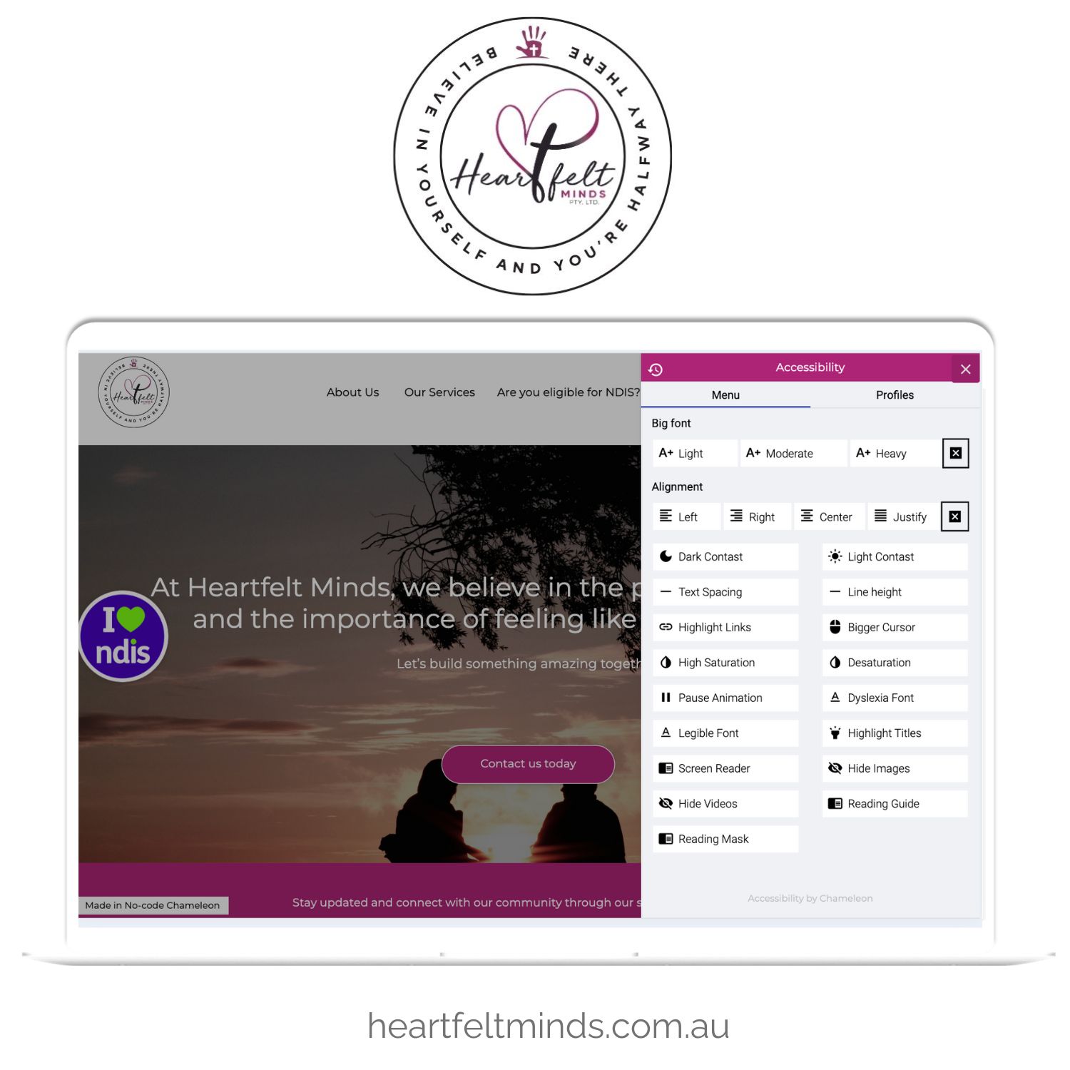 NDIS Provider Heartfelt Minds: Enhancing Accessibility for Members with Our Chameleon Platform Heartfelt Minds, an NDIS provider in Australia, has integrated our digital platform to elevate accessibility for its members. By leveraging the platform, Heartfelt Minds enhances service delivery and digital engagement with clients. The platform allows Heartfelt Minds to deliver tailored digital solutions that address the specific needs of their members. This integration streamlines their operations and boosts accessibility, providing more effective and personalised support for its members.